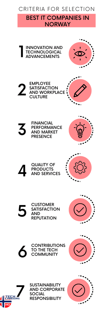 By assessing these comprehensive criteria, we ensure that the selected top 10 IT companies in Norway represent the best in the industry, offering exceptional opportunities for IT professionals and contributing significantly to the global technology landscape.